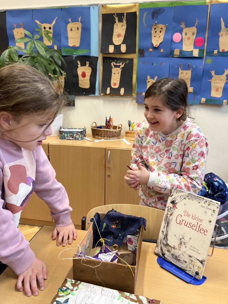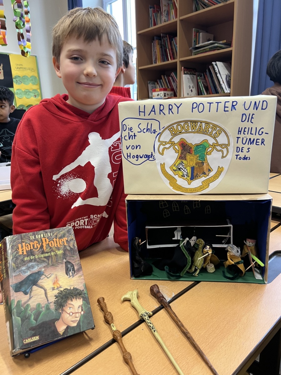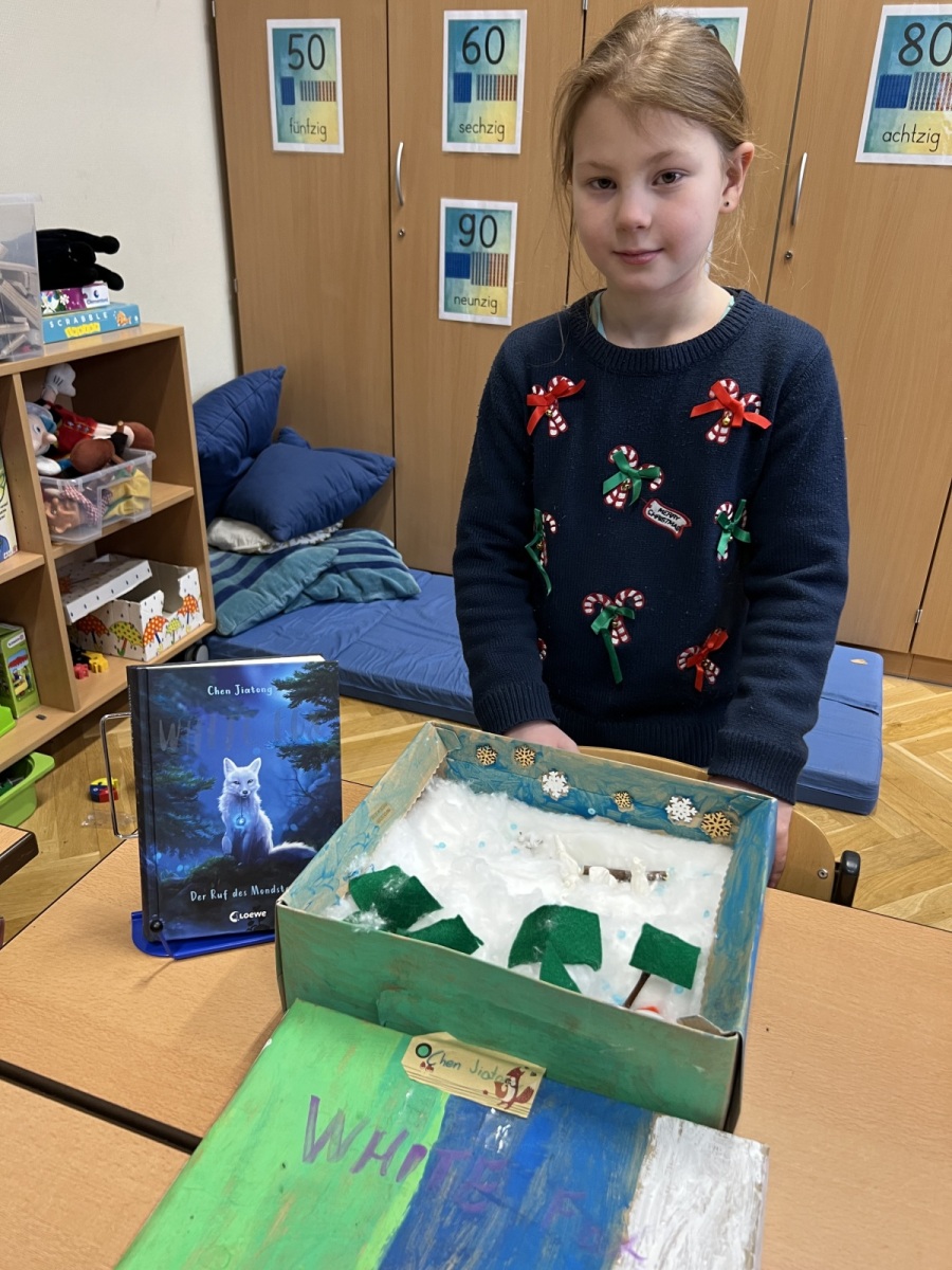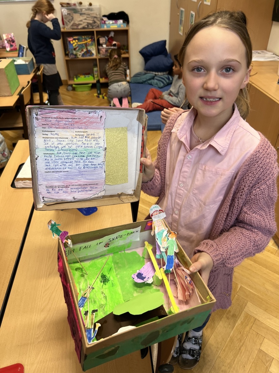 Jedes Kind setzte sich mit seinem Lieblingsbuch, den Charakteren kreativ auseinander und präsentierte dann das Buch in Form einer Leseschachtel, in der eine wichtige Szene aus dem Buch lebendig und oft auch wie ein Theaterstück wirkte.